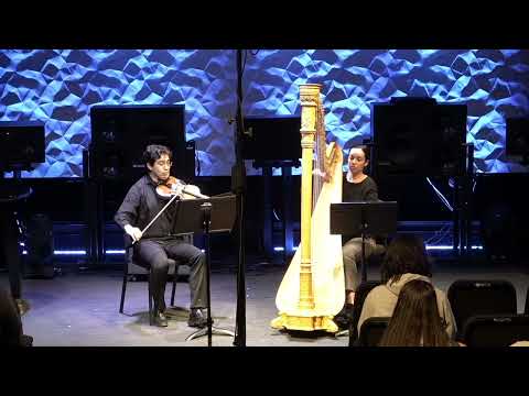 “Ripple Effect” is inspired by skipping rocks over a calm mountain lake, and the ripples that surge across the surface. The piece is in minor, to capture the feelings of the person throwing the rocks. In the harp, half steps and glissandos signify the ripples themselves, while the Violin plays the solemn tune of the thrower.